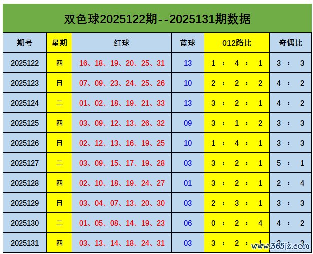 上期转头:双色球第2025131期开出奖号:红球03、13、14、18、24、31;蓝球03,其中红球012路比为3:2:1,奇偶比3:3,蓝球开出一区号码03。